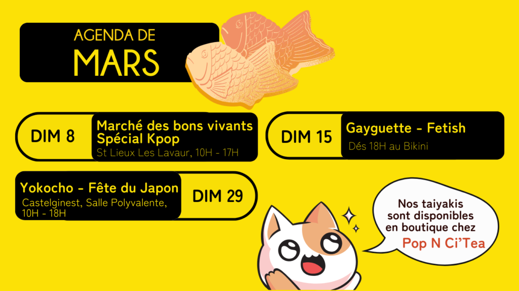 Et retrouvez-nos taiyaki chez Pop N CiTea, en vente à Toulouse, 6 rue des Puits Clos, ouvert du Lundi au Samedi de 12H à 20H.